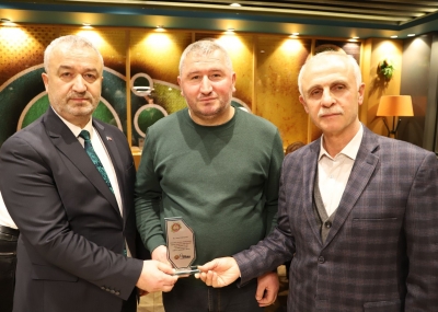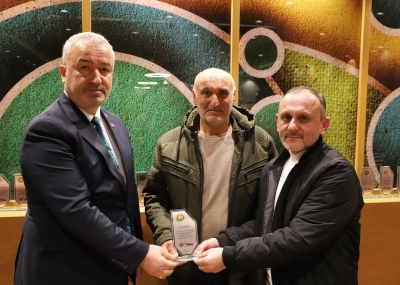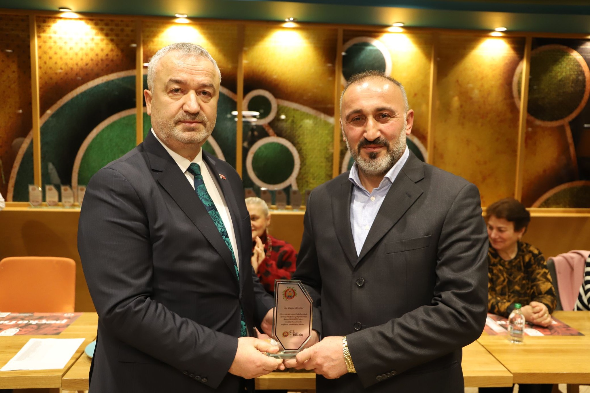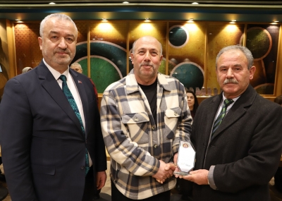 Topaloğlu, daha sonra emekli olan personele plaket verdi.