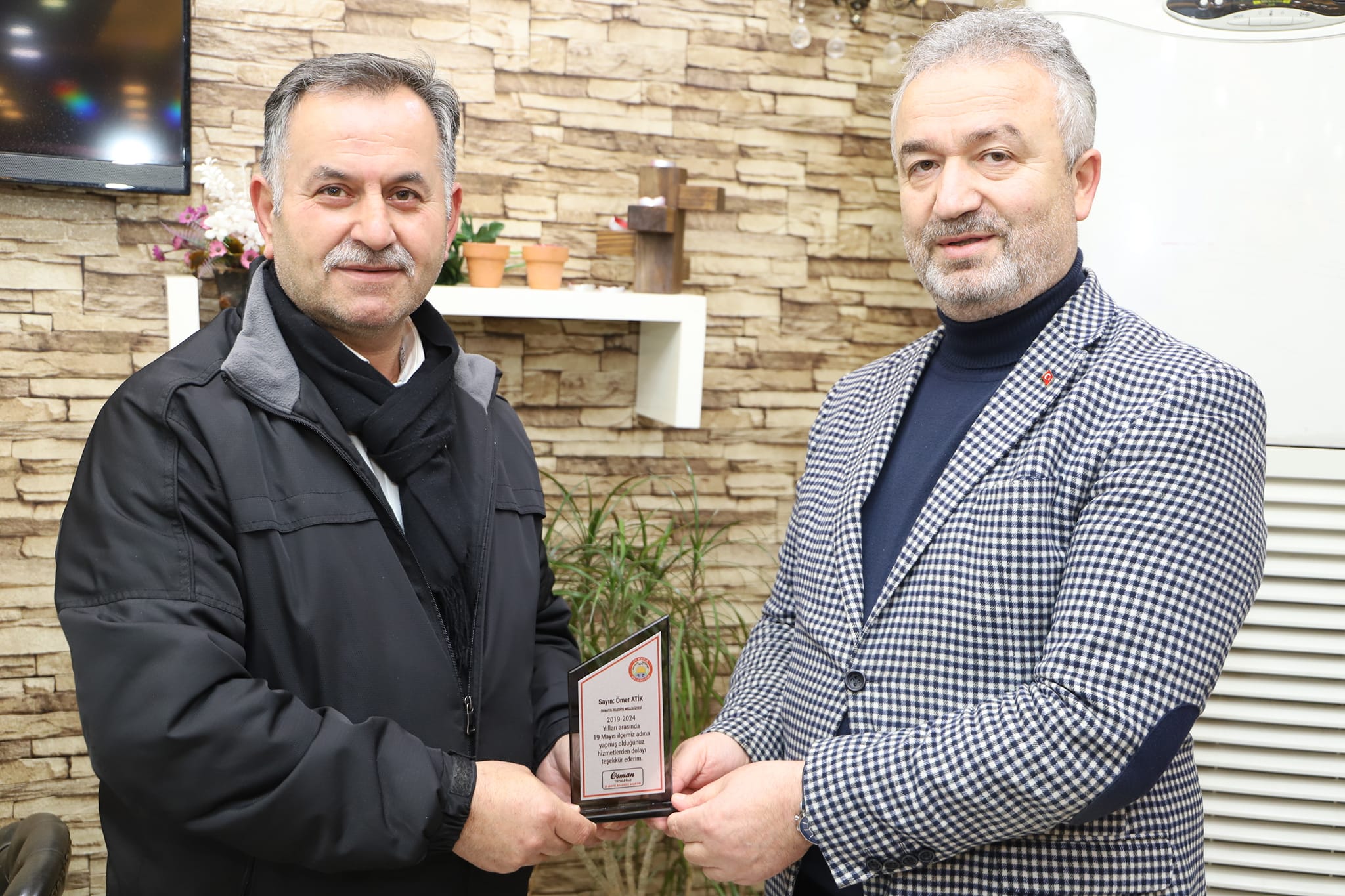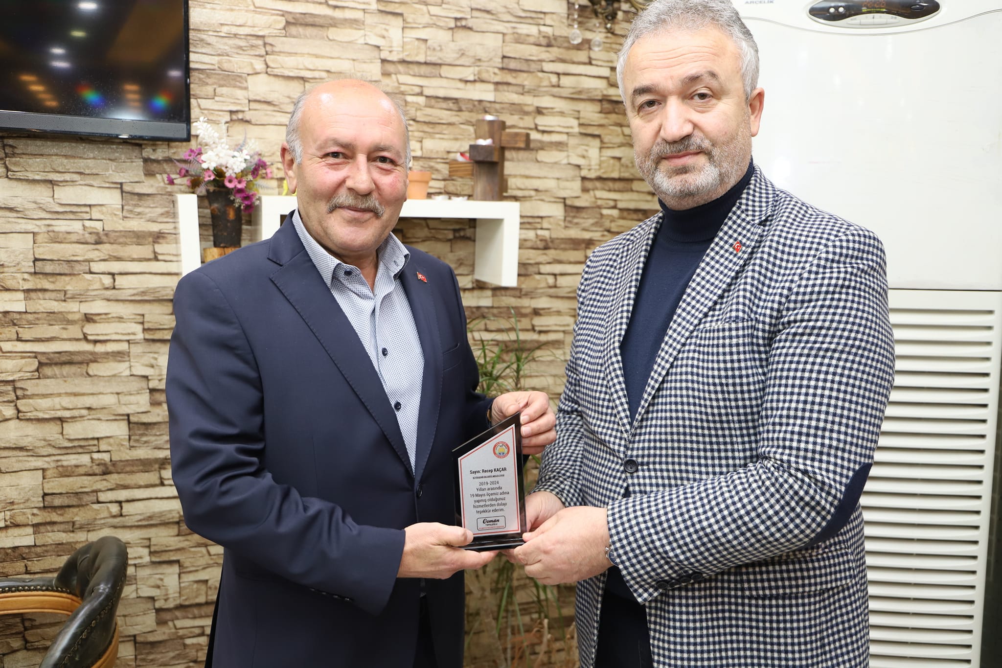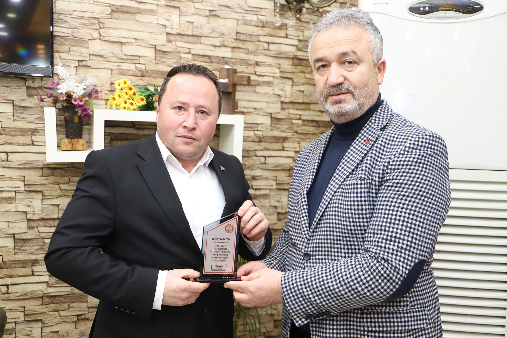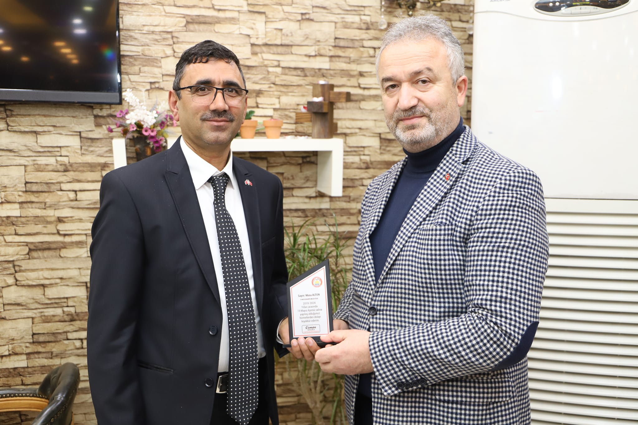 19 Mayıs Belediye Başkanı Osman Topaloğlu 2019-2024 yılları arasında birlikte çalıştığı belediye meclis üyelerine teşekkür plaketi taktim etti.