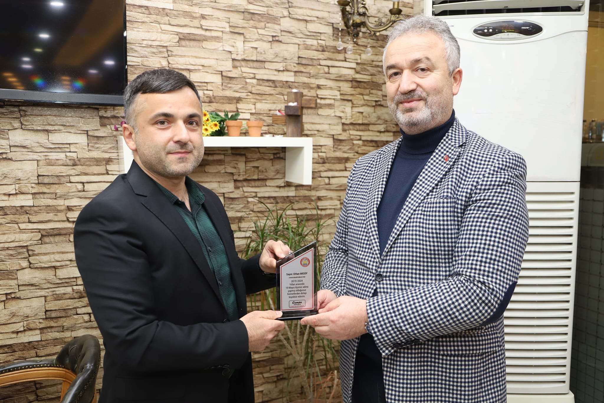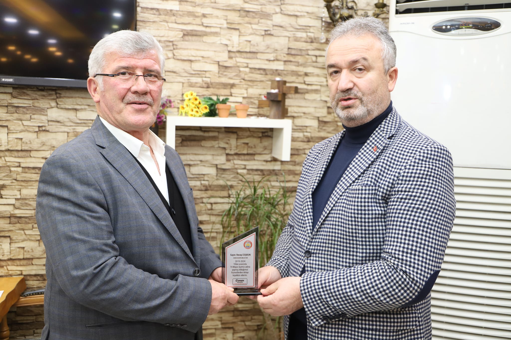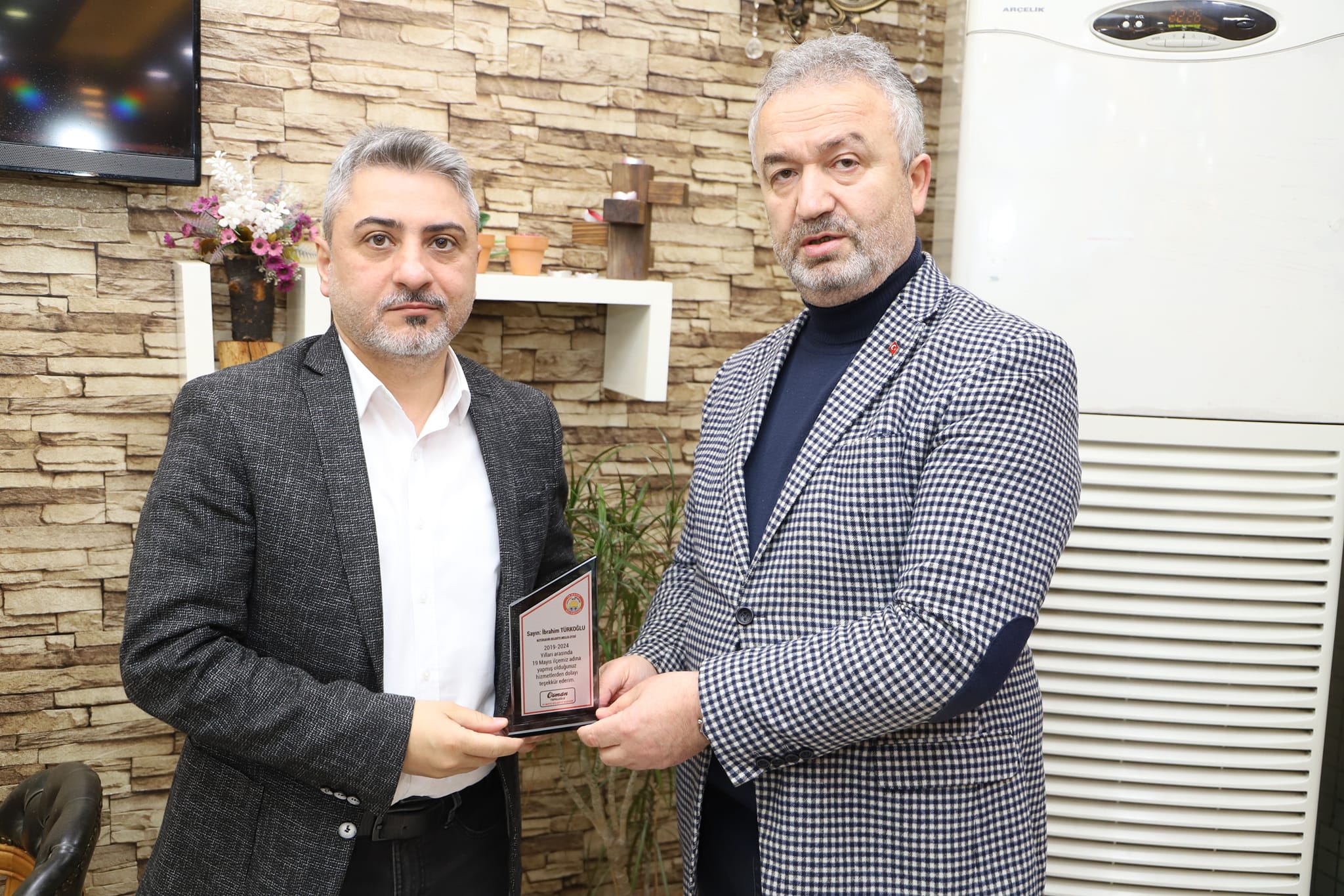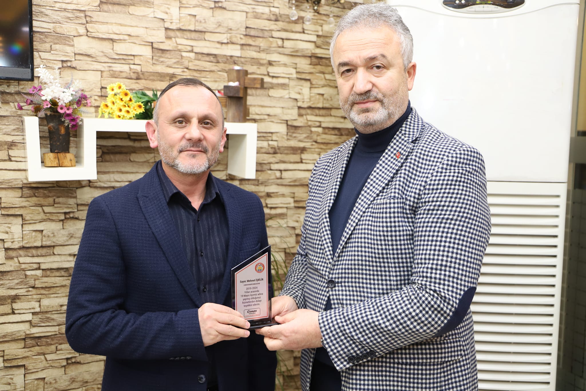19 Mayıs Belediye Başkanı Osman Topaloğlu 2019-2024 yılları arasında birlikte çalıştığı belediye meclis üyelerine teşekkür plaketi taktim etti.
