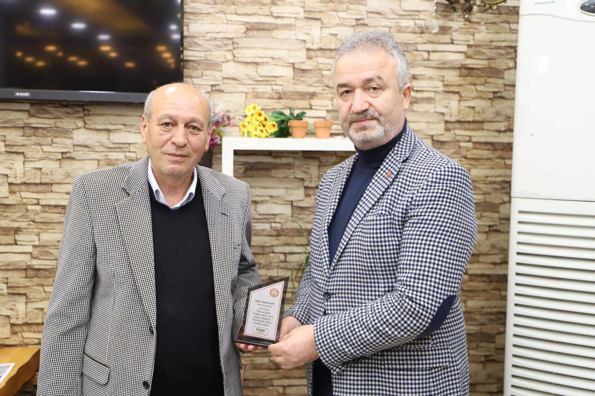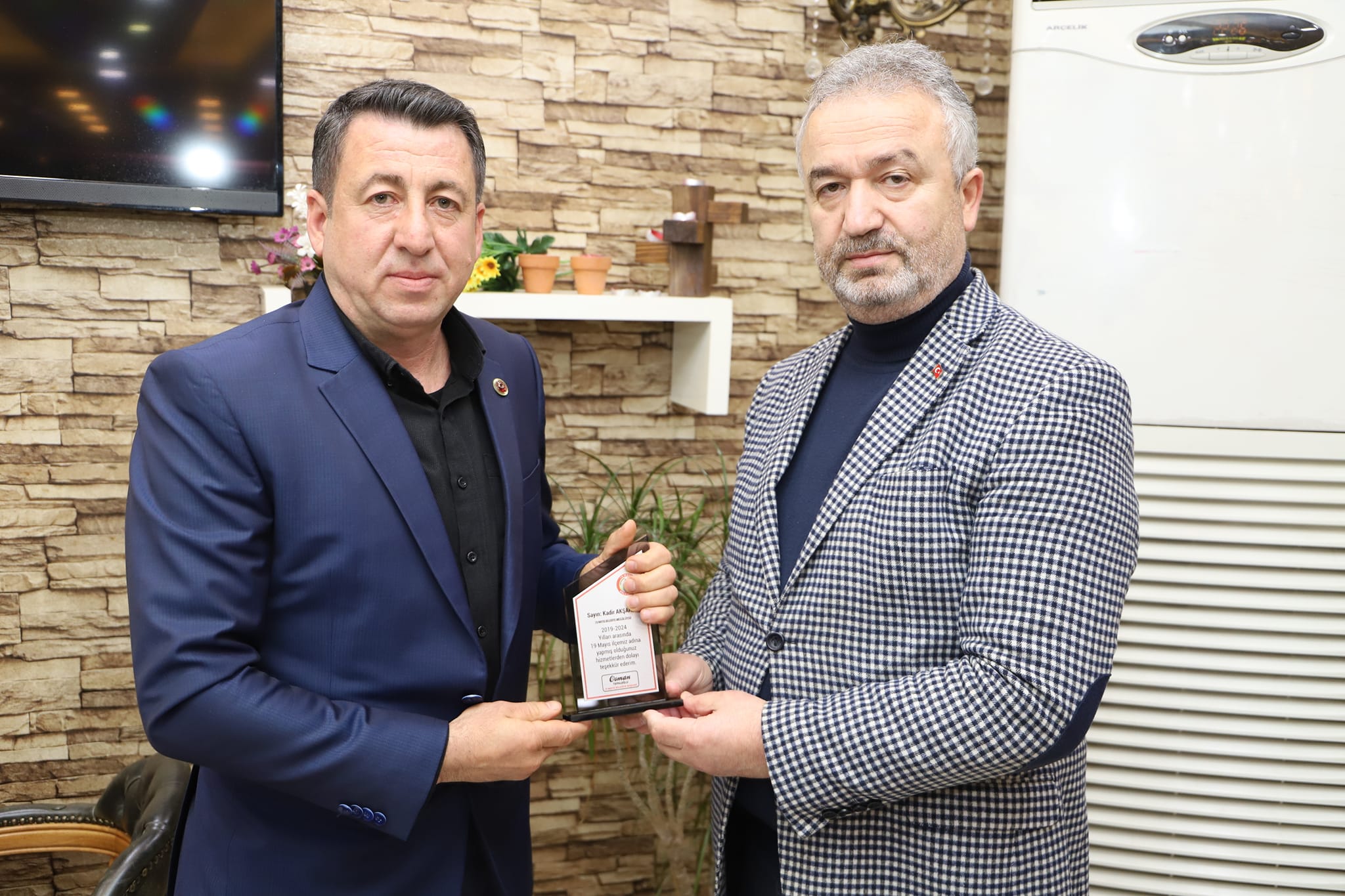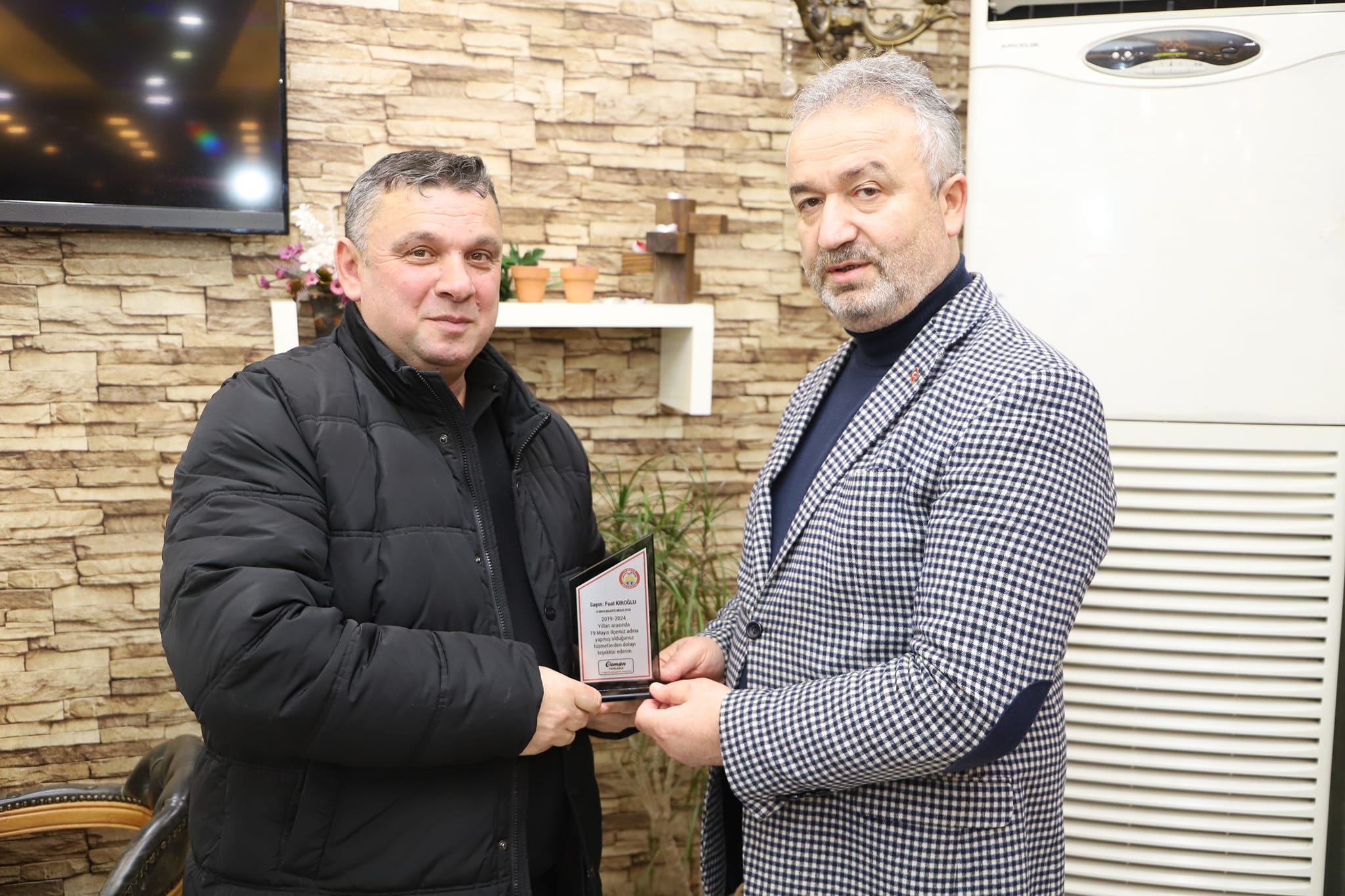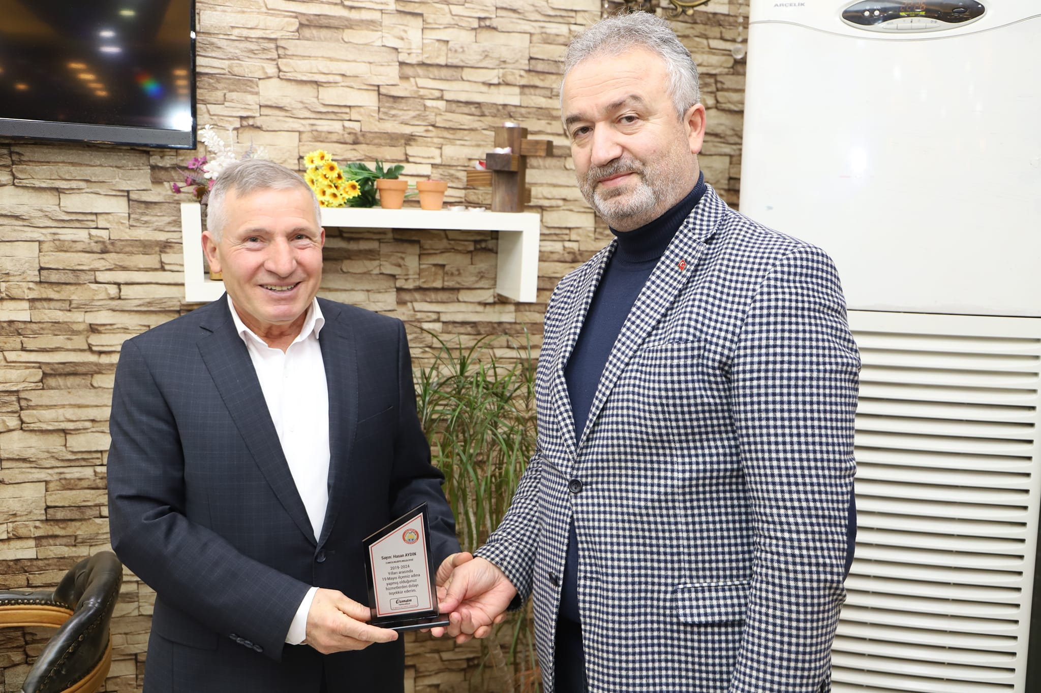 19 Mayıs Belediye Başkanı Osman Topaloğlu 2019-2024 yılları arasında birlikte çalıştığı belediye meclis üyelerine teşekkür plaketi taktim etti.