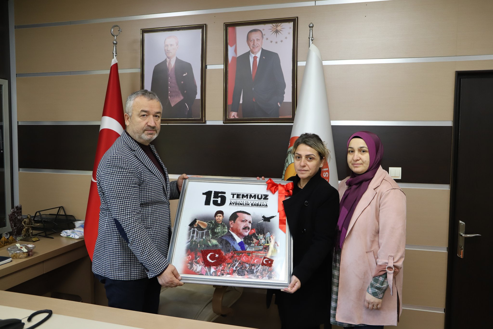 Halk Eğitim Merkezi Müdürü Şinasi Aksan, misafirperverliğinden dolayı Başkan Osman Topaloğlu’na teşekkürlerini ileterek, cam kursunda işlenen tabloyu kendisine hediye etti.