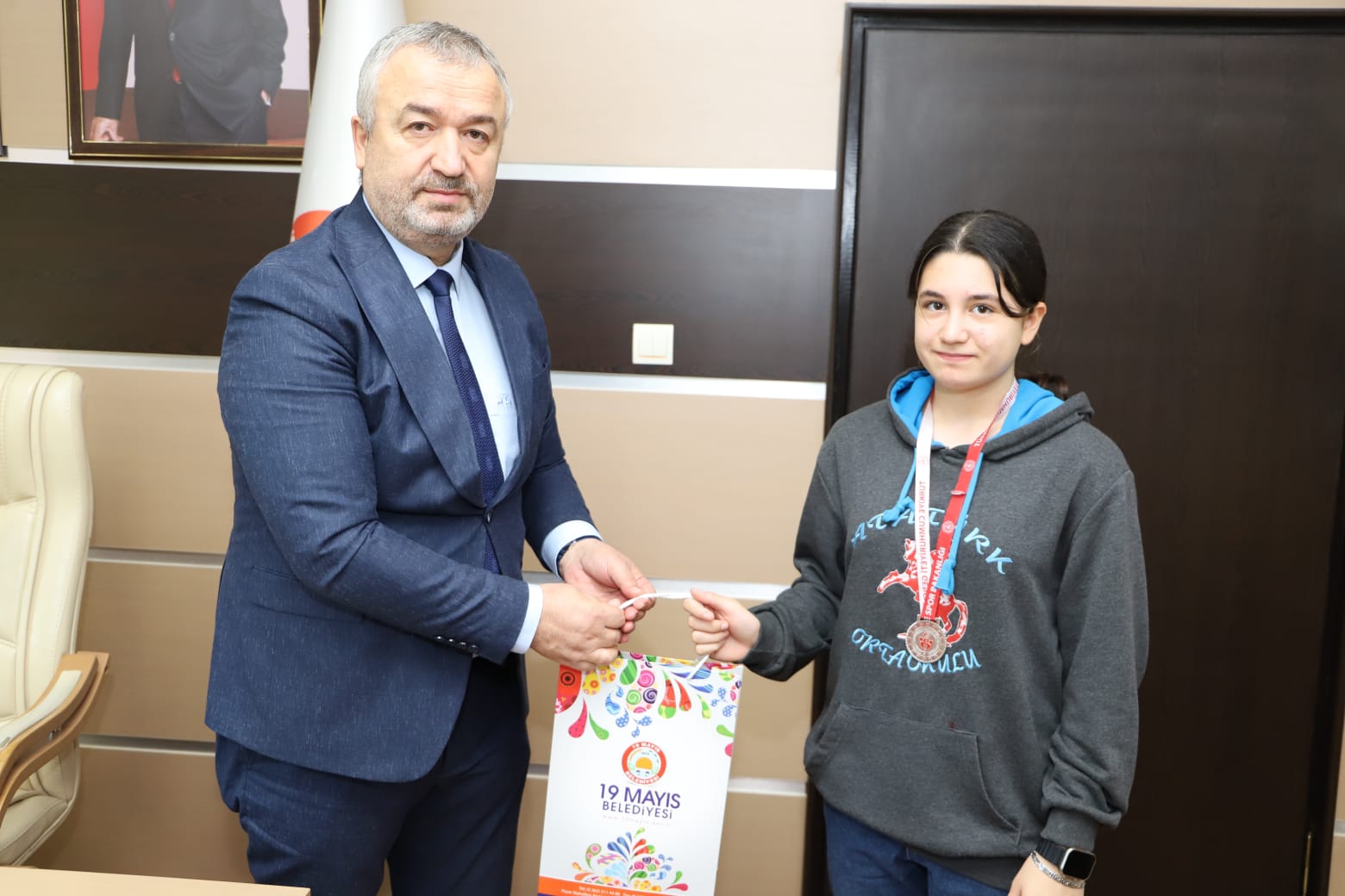 19 Mayıs Belediye Spor, Karate Sporcuları 19 Mayıs Belediye Başkanı Osman Topaloğlu’nu makamında ziyaret etti.