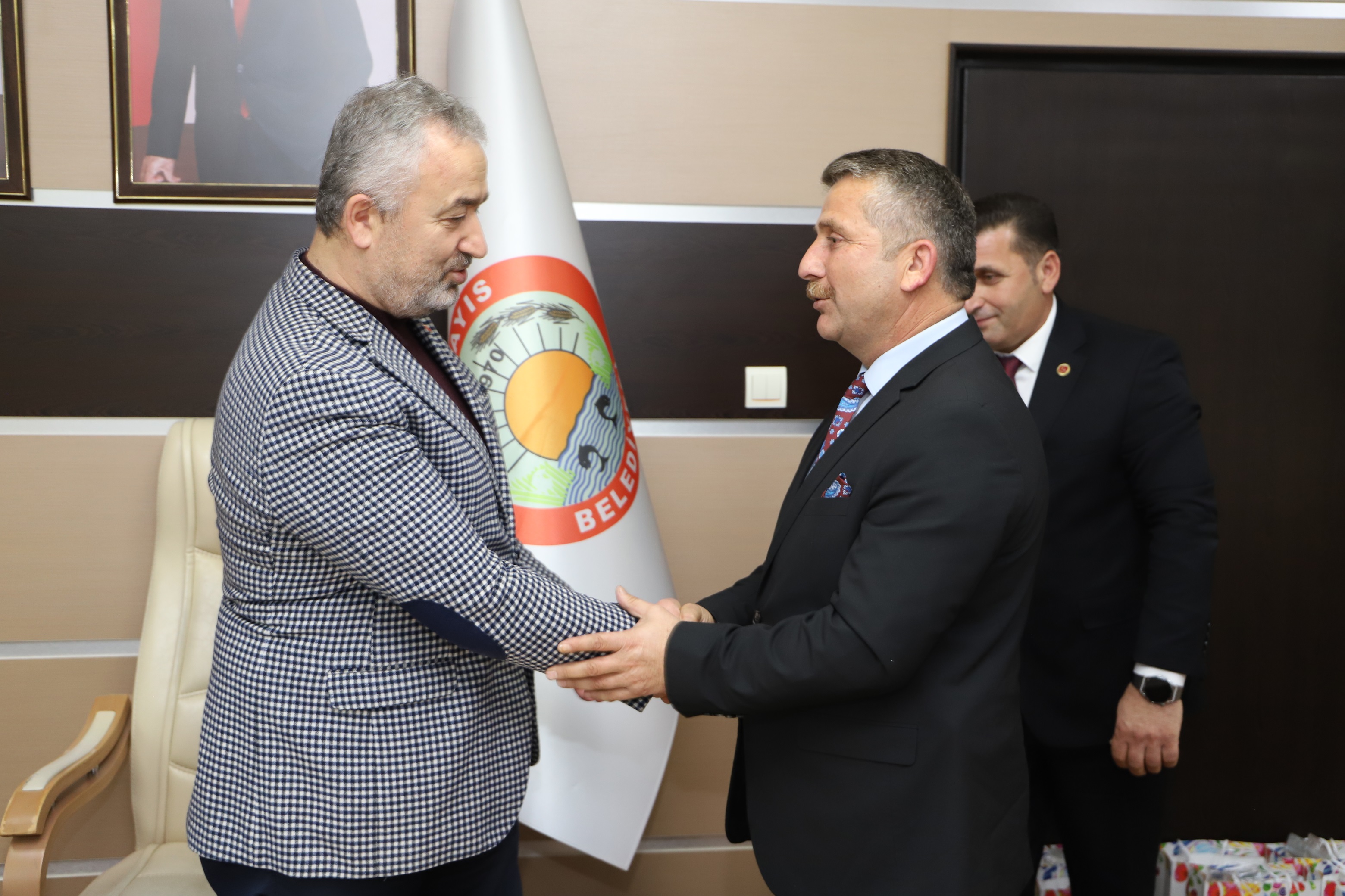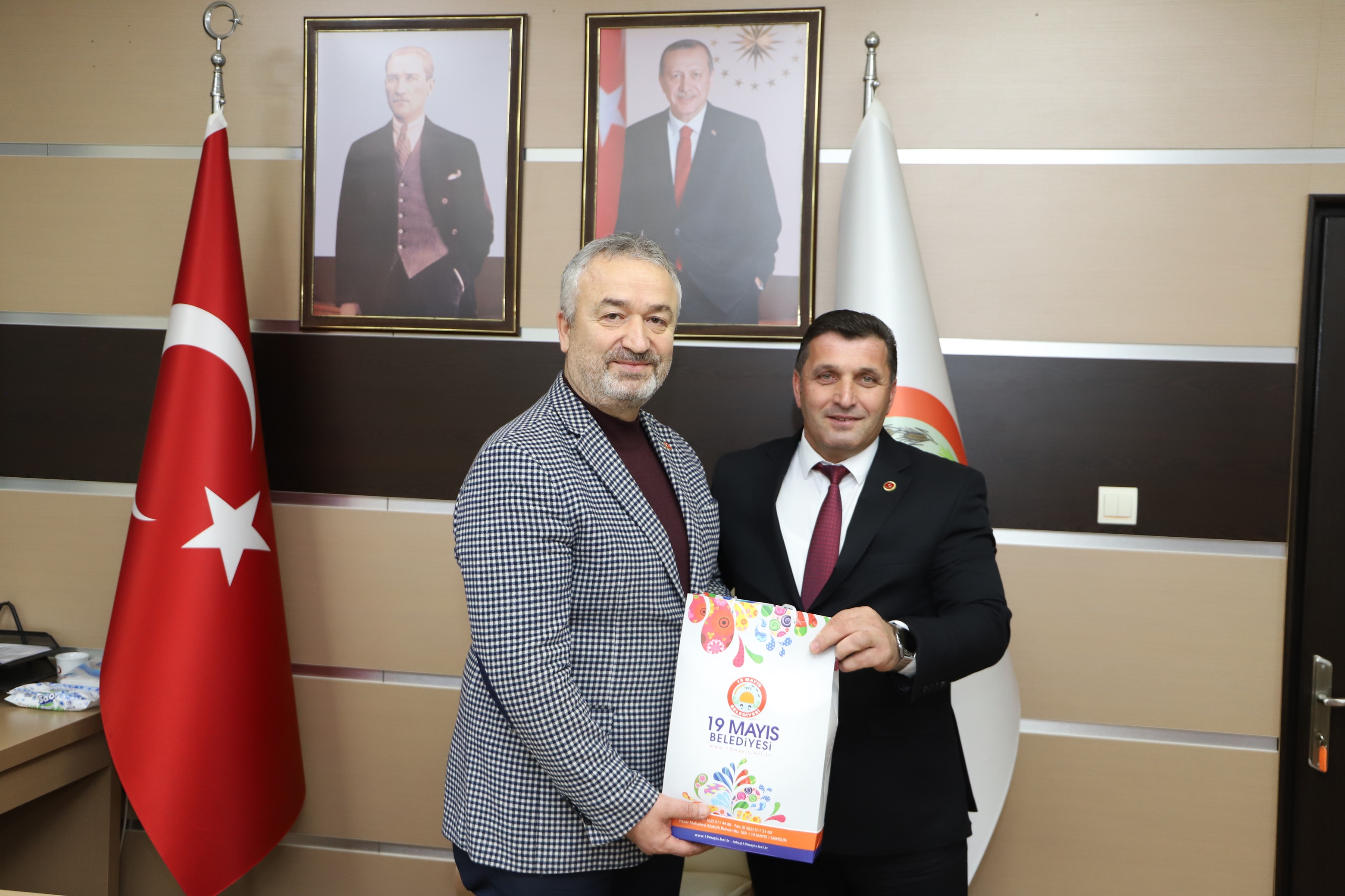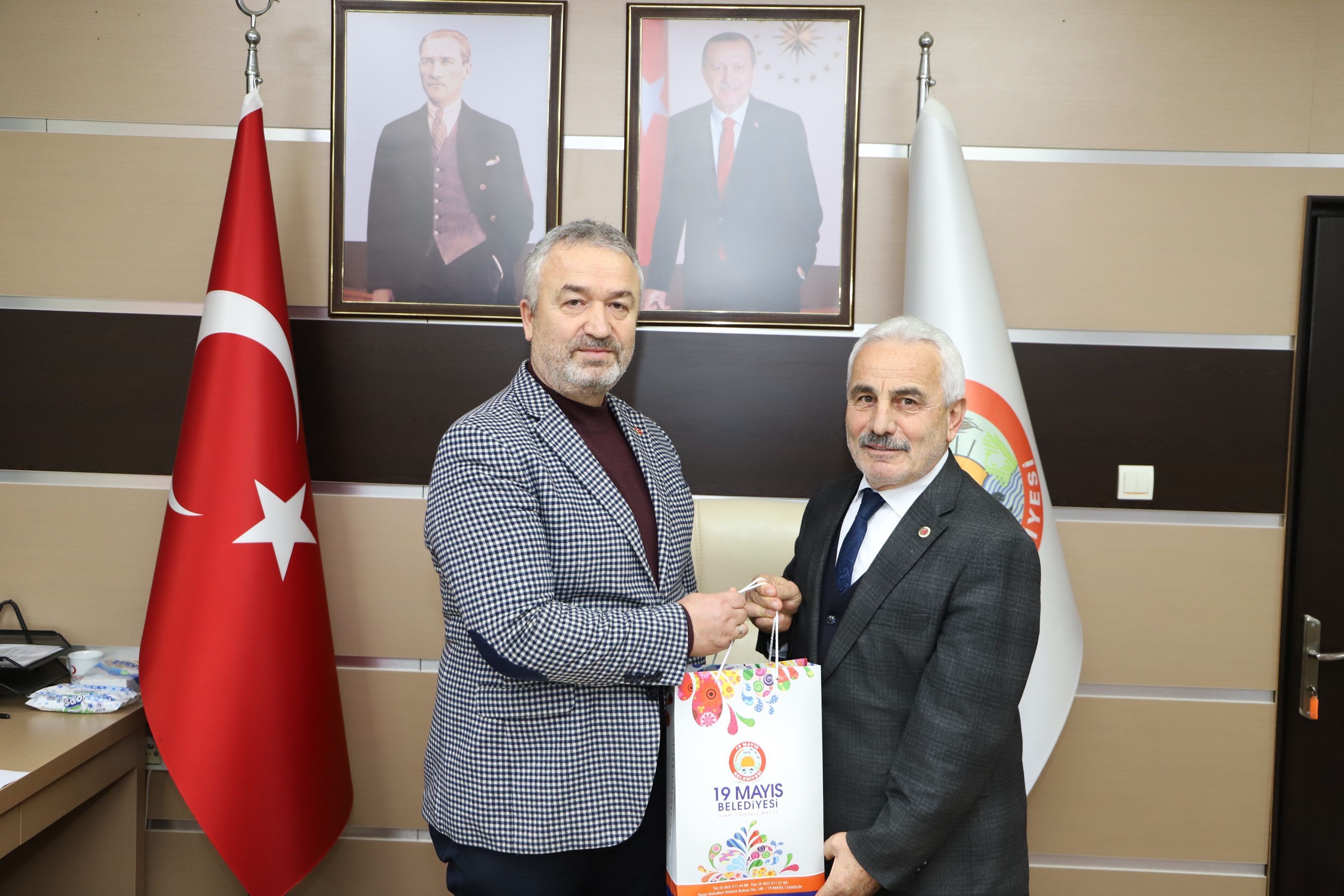 Belediye Başkanlık Makamında gerçekleşen ziyarete 19 Mayıs Kaymakamı İbrahim Civelek, İlçe Jandarma Komutanı Üsteğmen Serkan Kalınbacak ve 19 Mayıs Muhtarlar Dernek Başkanı Salih Karakartal katıldı.